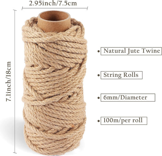 Natural Jute Twine Rope (1.5mm/2mm/3mm/6mm) Durable String for Handmde Crafts,Gardening Applications,Home Gardening,Cat Scratching Post,Gift Packaging... (6mm*82ft)