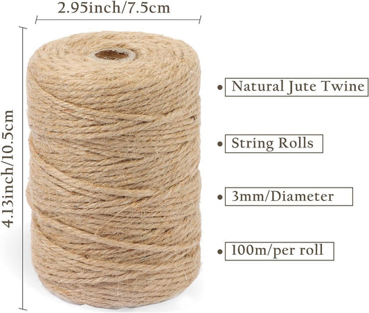 Natural Jute Twine Rope (1.5mm/2mm/3mm/6mm) Durable String for Handmde Crafts,Gardening Applications,Home Gardening,Cat Scratching Post,Gift Packaging... (3mm*328ft)