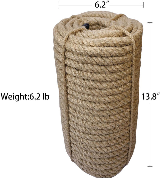 100 Feet 1/2 Inch Thick Natural Jute Rope, 12mm x 30m Strong Hemp Rope, Thick Twine Rope for Gardening