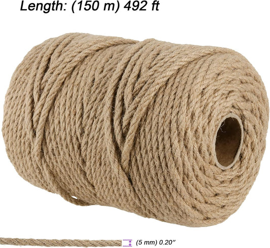 JOIKIT 5mm 492 Feet Jute Twine, Natural Braided Jute Rope, Twisted Hemp Rope for Crafts, Gardening, Bundling, Home Decoration