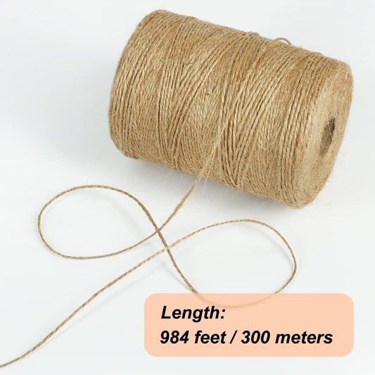 Tenn Well Natural Jute Twine, 984 Feet 2Ply 1mm Thin Brown Twine String for Crafts, Crocheting, Gift Wrapping, Gardening, Farmhouse Decor, Christmas Ornaments