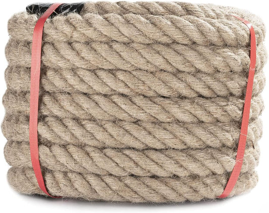 Jute Rope 1 Inch 49 Feet Twisted Hemp Rope for Crafts, Climbing, Hammock, Nautical, Tug of War, Railings, Landscaping, Home Decorating (1 inch x 49 ft)