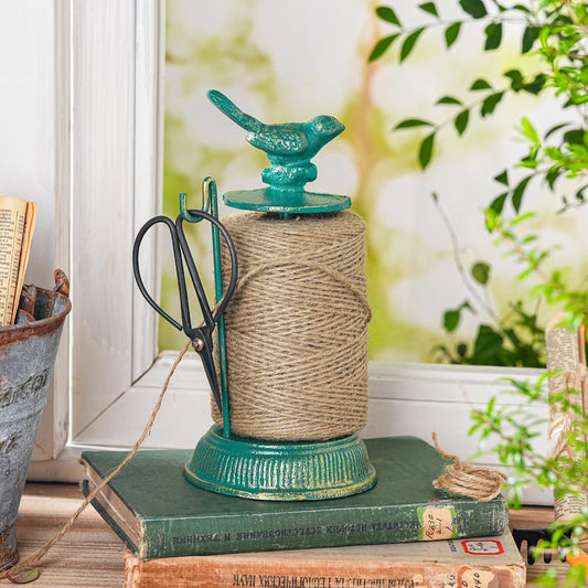 Sungmor Cast Iron Garden Twine Holder Set - 1300ft. Natural Jute Twine String & Rope Rack & Scissors - Decorative & Practical Home Arts Crafts Tools for Picture Display Gift Wrapping Packing Gardening