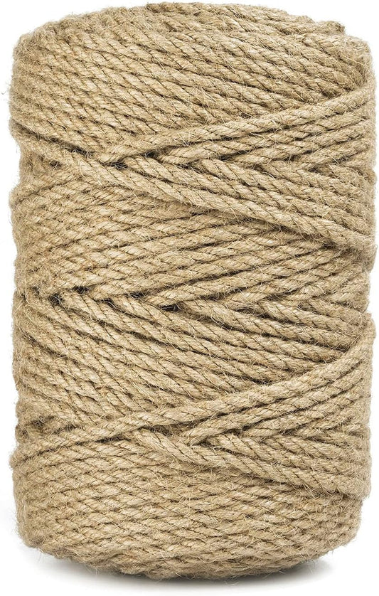 Natural Jute Twine 328ft 8mm,4Ply Twisted Thick Twine Rope Strong Jute String Roll for Crafts Gift Wrapping Gardening Home Decor Bundling Cat Scratching Post