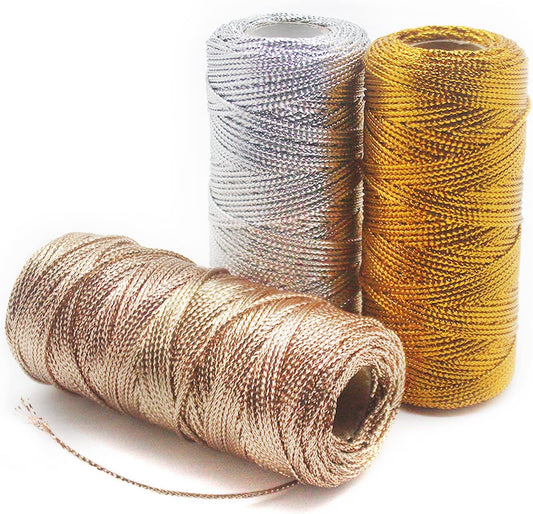 Anvin Metallic Bakers Twine - 328 Yards, Pack of 3 (Gold, Silver, Rose Gold) for Arts & Crafts, DIY Tags & Ornaments