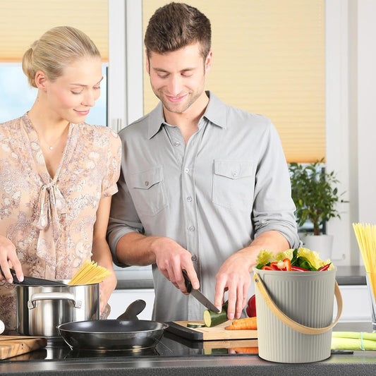 Granrosi Countertop Compost Bin Kitchen - 1.3 Gal Indoor Compost Bucket with Lid for Kitchen; Farmhouse Rust Proof & Odorless Composter Bin for Countertop; 3 Charcoal Filters