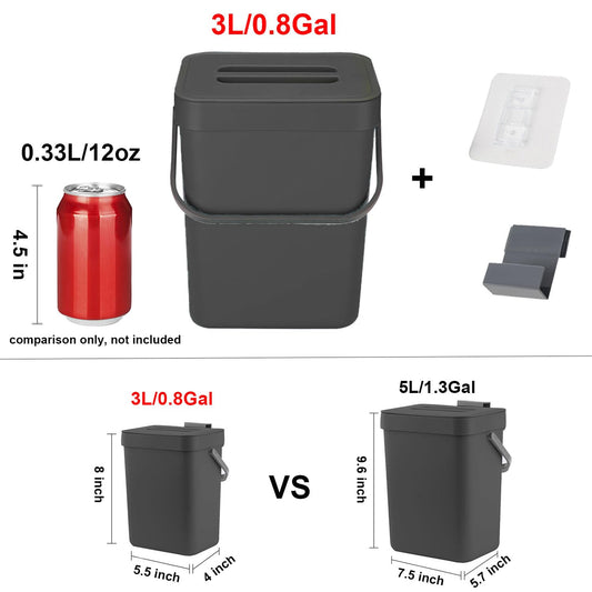EKO Puro Mini Wall-Mounted Kitchen Trash Can with Lid Food Waste Caddy, 0.79 Gal / 3L (Grey)
