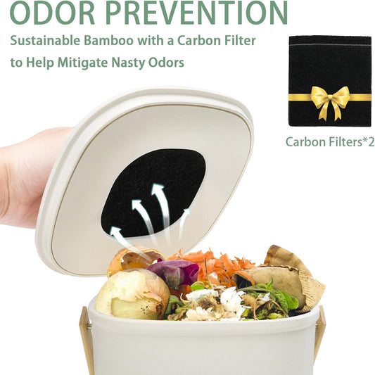 Vipush Bamboo Fiber Compost Bin with Lid Small Countertop Compost Bin Includes Charcoal Filter, Beige