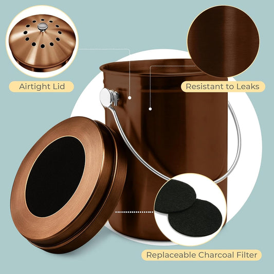 EPICA Countertop Compost Bin Kitchen | 1.3 Gallon | Odorless Composting Bin with Carbon Filters | Indoor Compost Bin with Lid | Stainless Steel Kitchen Composter for Food Scraps & Waste Recycling