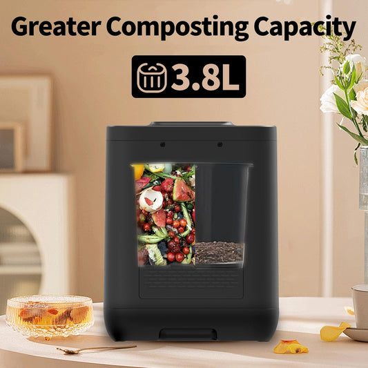 Electric Composter for Kitchen, Compost Bin - 4L Large Capacity, 3 Processing Modes, 3 Capacity Options, 2 Carbon Filters, Auto-Cleaning Auto-Drying (Black)
