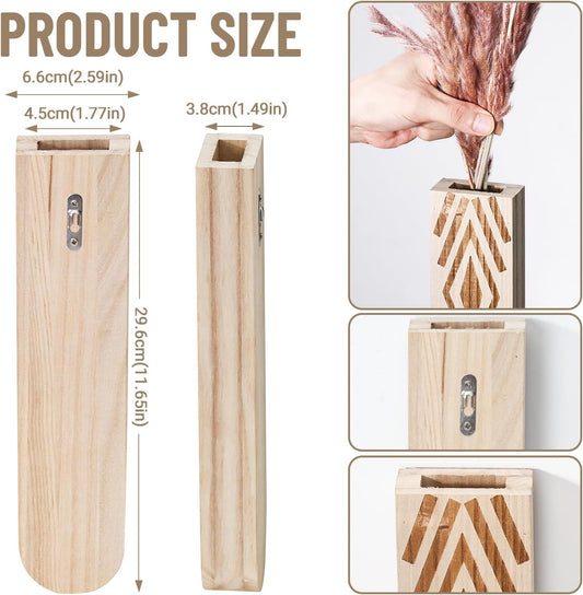 Wooden Wall Planter Set of 4 - Modern Home Decor for Living Room, Bedroom, Bathroom - Vintage Finish Planter for Dried Flowers, Faux Greenery, Indoor Plants