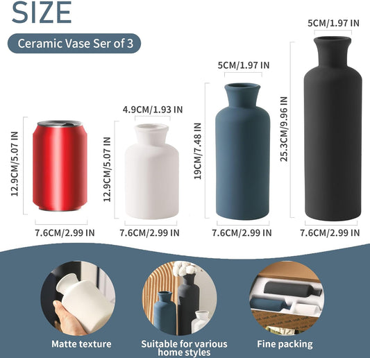 Ceramic Vase Set of 3, Neutral Modern Vases Home Decor Boho Vase Farmhouse Decor Flowers Pampas Vases for Table Mantel Entryway Shelf Living Room Kitchen Bathroom - Navy Blue