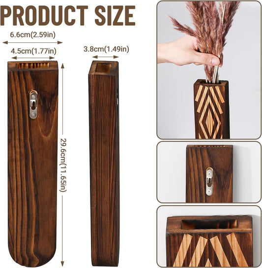 Wooden Wall Planter Vase Set of 2, Boho Hanging Planter for Indoor Plants & Flowers, Natural Wood Wall-Mounted Planters for Art Home Decor - Living Room, Bedroom, Bathroom, Patio (Brown)