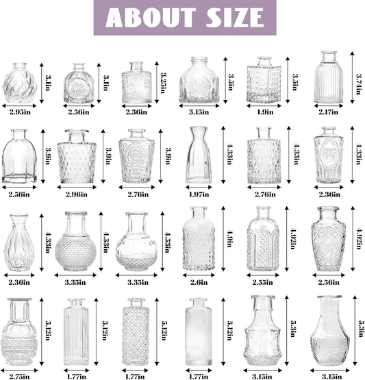 Bud Vases - in Bulk 24,Vintage Small Glass Bud Vases for Flowers, Clear Crystal Mini Glasses in Bulk, Small Flower Design for Centerpieces Wedding Decorations Home Flower Party Decor