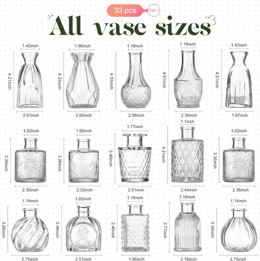 Set of 33 Bud Vases for Flowers, Small Glass Vases for Flowers,Small Vintage Glass Bottles for Rustic Wedding Centerpieces and Home Table Flower Decor
