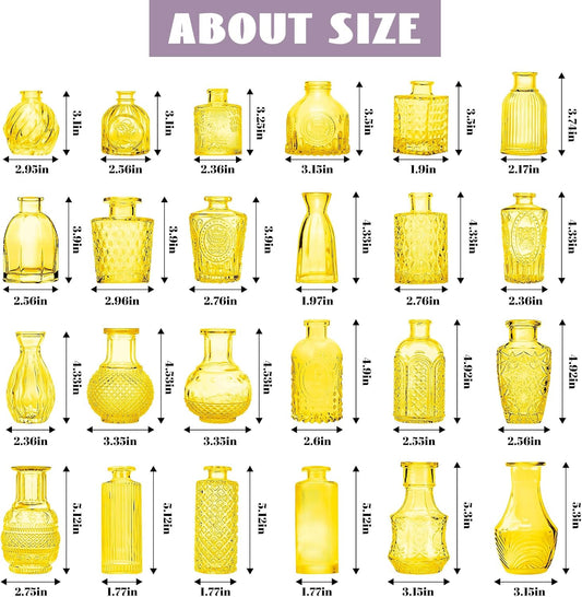 Light Yellow Glass Bud Vases Set, 24 Pcs Vintage Small Vases for Flowers, Crystal Mini Glasses in Bulk, Small Flower Design for Centerpieces Wedding Decorations Home Flower Party Decor