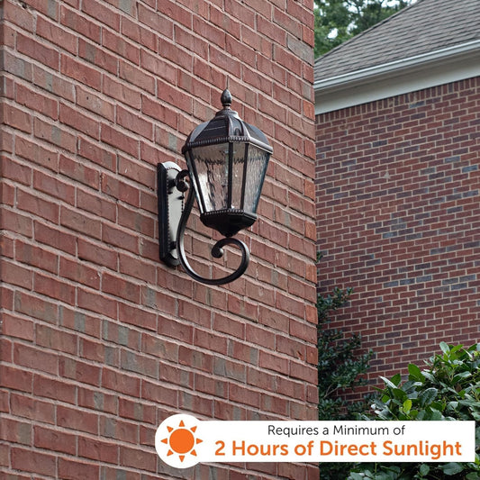 Gama Sonic Solar Outdoor Wall Light, Royal Bulb Exterior Sconce Lamp, Brushed Bronze Finish Aluminum, Clear Beveled Glass, Warm White LED, Large 21-Inch Height, 98B110 Upgraded Panel and Battery