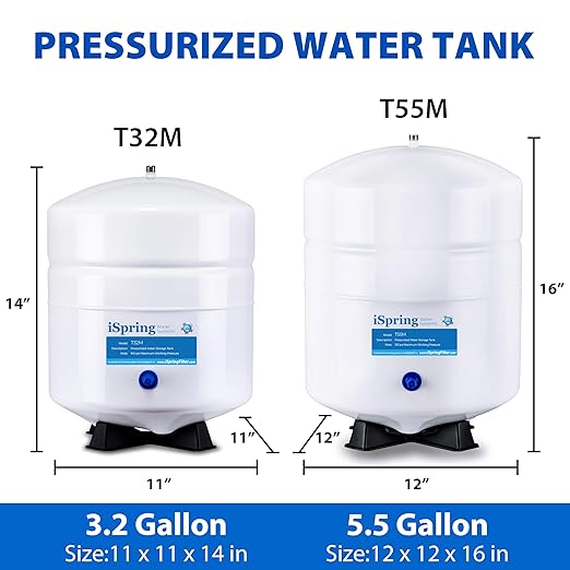 iSpring T32M Pressurized Water Storage Tank with Ball Valve for Reverse Osmosis RO Systems, 4 Gallon, 1/4" Tank Valve Included, White