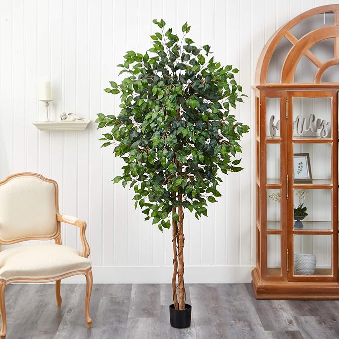 - HOME DECOR ACCENT: A beautiful lifelike plant perfect to accent any room or space for year-round greenery. Unlike the real Ficus tree (which is finicky and practically leafless in almost any home light conditions), our Ficus tree is eternally verdant and deep green with 1008 individual leaves on several sturdy branches. Measuring six feet in height, this wonderful reproduction Ficus would look lovely in a picture window, home entranceway, or even the office.
