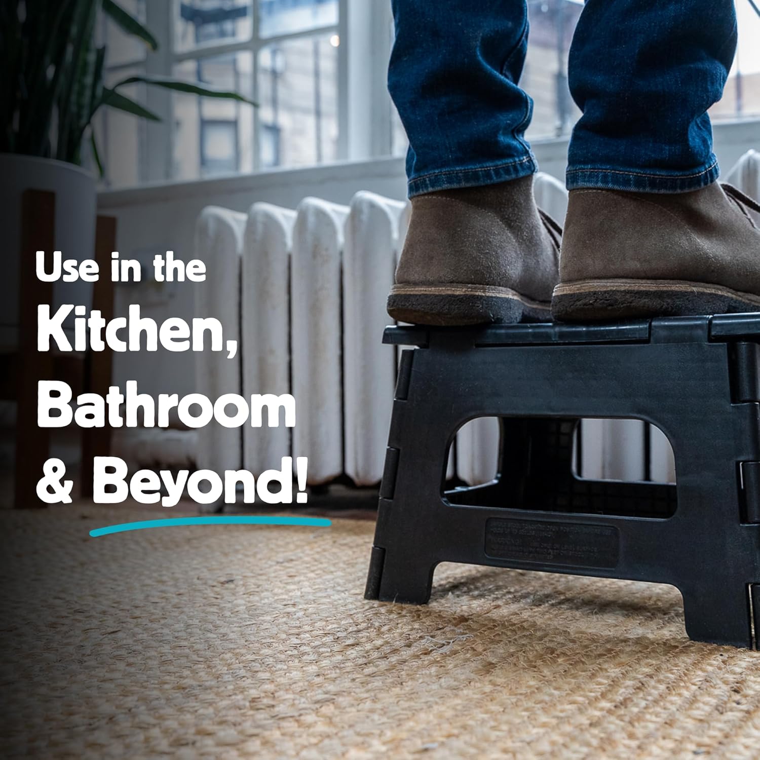 - Easy to Carry, Stable & Stores Flat: Lightweight yet sturdy, you can easily store this folding step stool in a cabinet or hang it on the wall