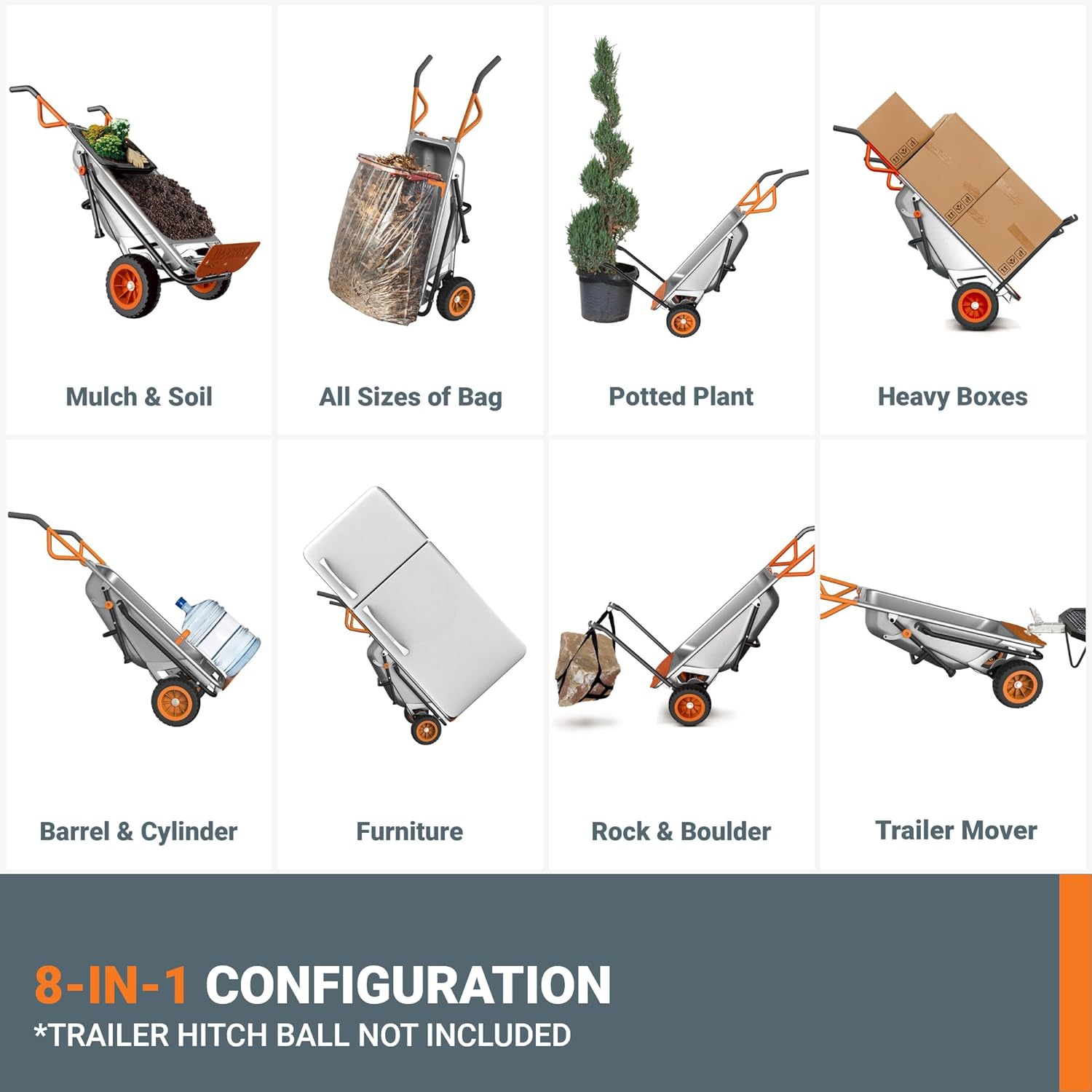 - INDEPENDENCE IN EVERY TASK: The Aerocart garden cart turns daunting two or three-person tasks into solo adventures. Whether it's as an 8-in-1 wheelbarrow, hand cart, or a dolly that lifts up to 200 lbs., you're in control.