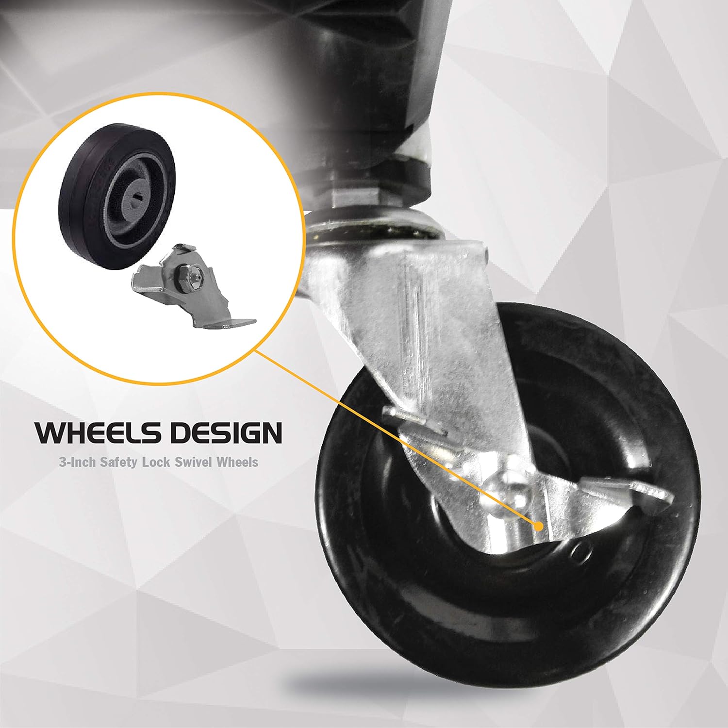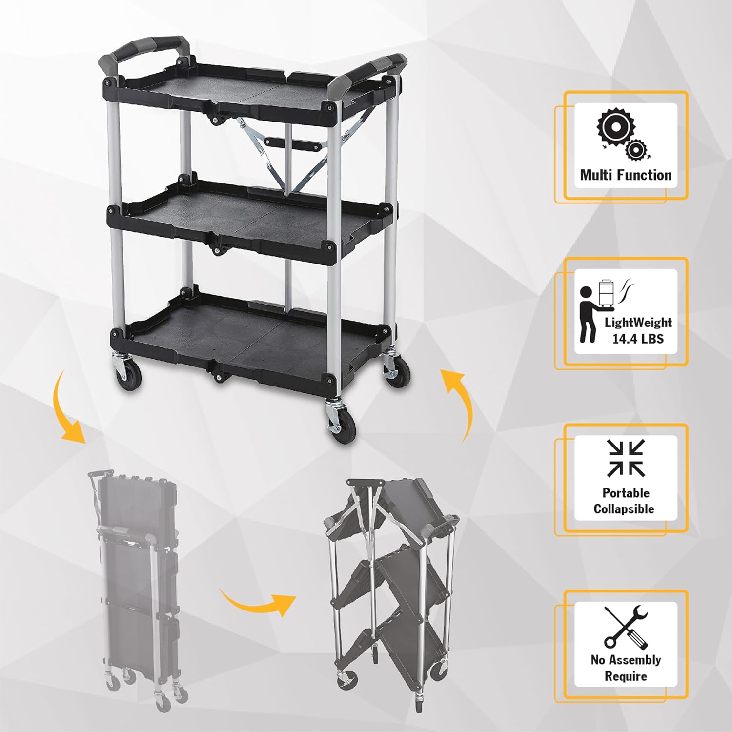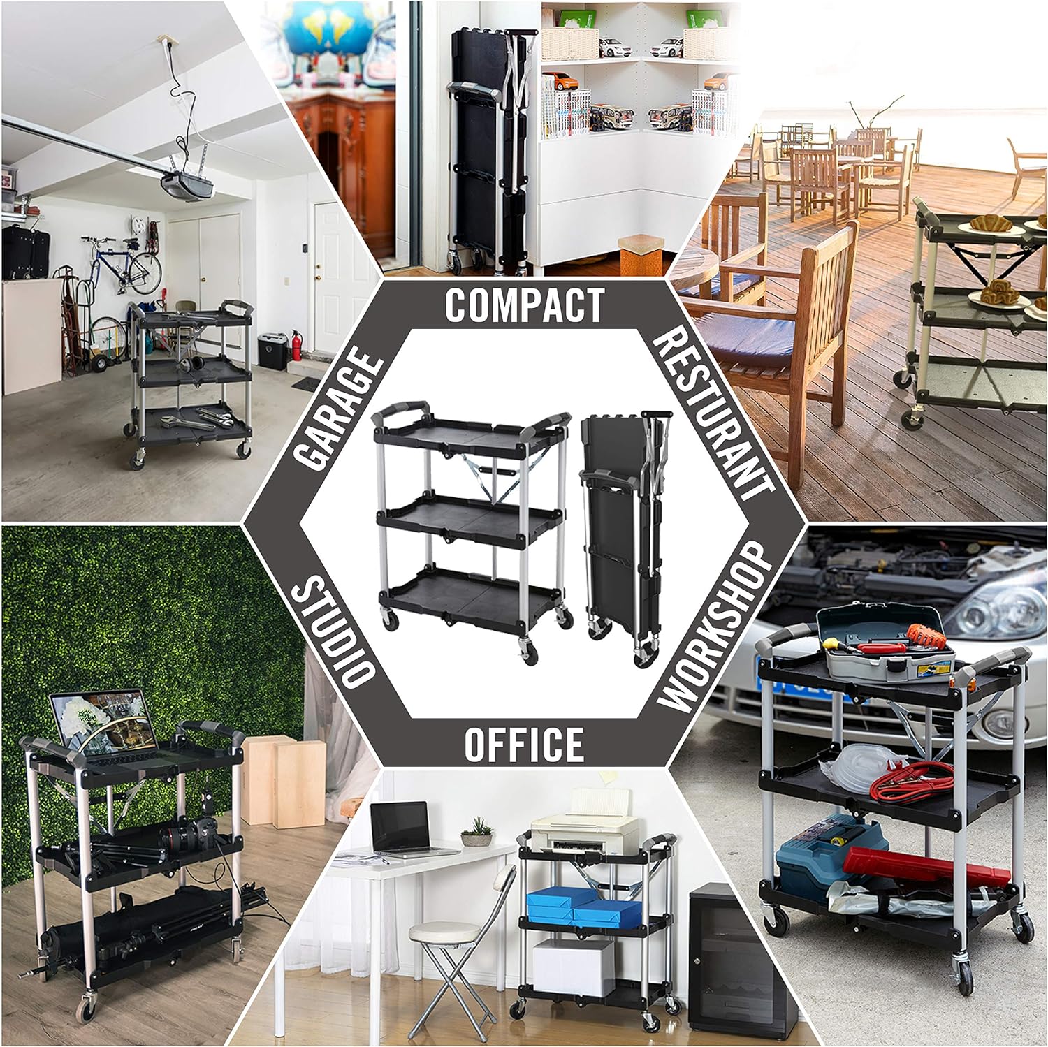 - Ergonomic Design: It has 3 collapsible shelves designed to offer you plenty of space when moving equipment, tools, files, garden supplies and more; It can be folded down to 8 inches to store away easily