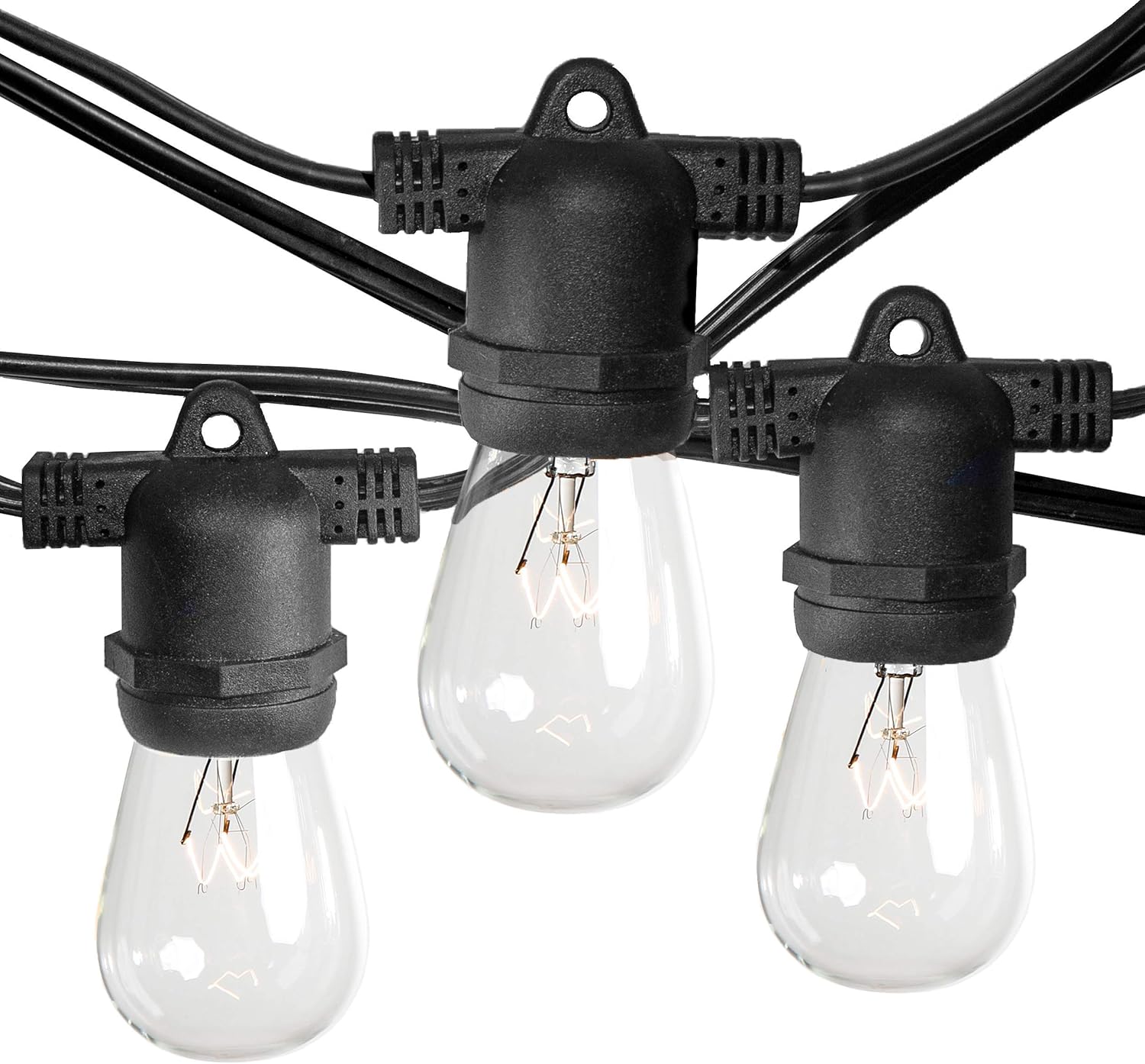 Hometown Evolution, Inc. Commercial E26 String Lights with 16 Gauge Wire (50 Foot 25 Socket, S14 11 Watt Clear Bulb)