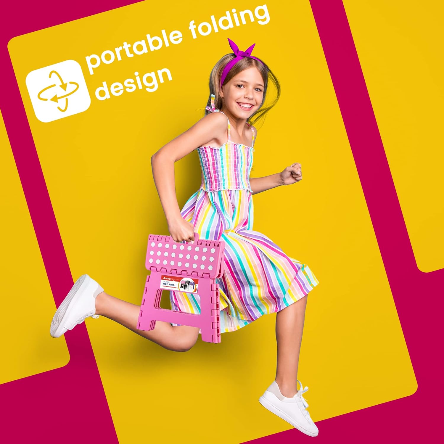 ACSTEP 9 Inch Folding Step Stool - The Lightweight Step Stool is Sturdy and Safe Enough. Opens Easy with One Flip. Great for Kitchen, Bathroom, Bedroom Pink
