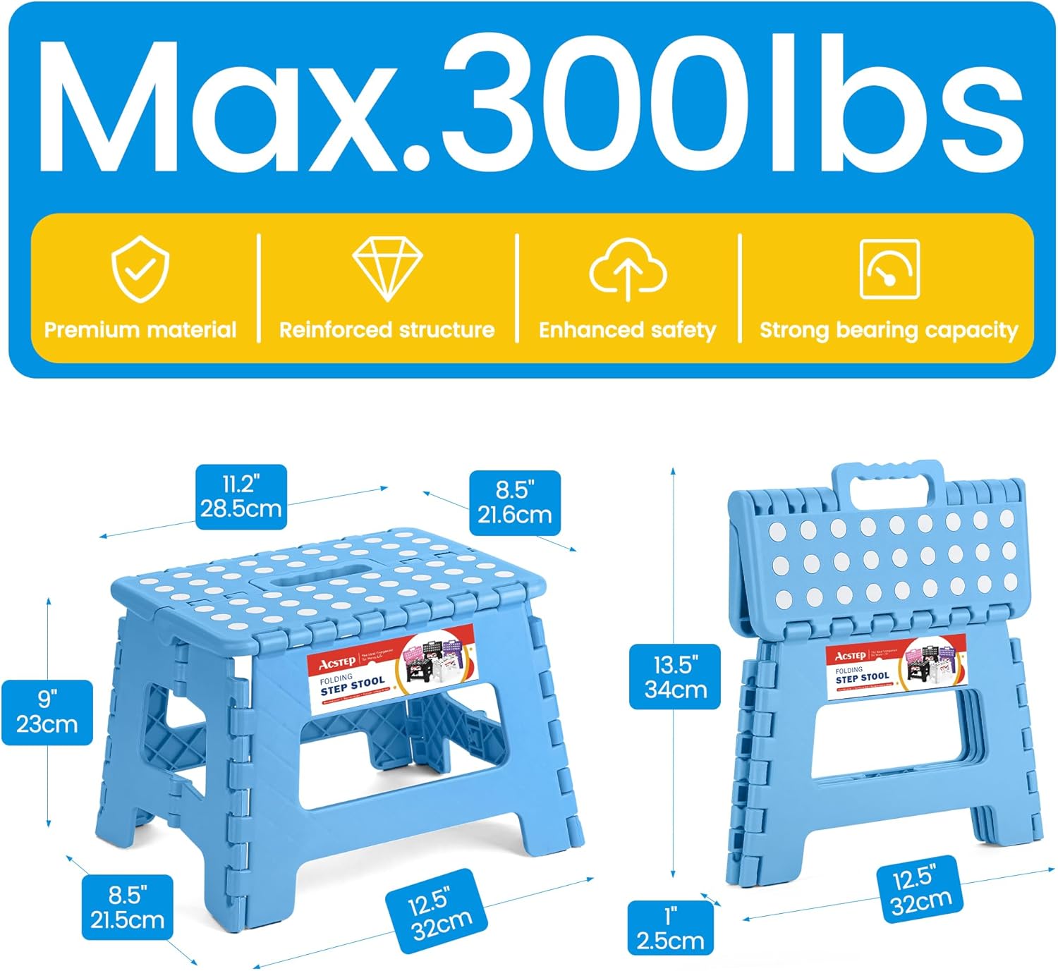 ACSTEP Folding Lightweight Plastic 9 inch Foldable Step Stool, Non Slip Folding Stools for Kitchen Bathroom Bedroom (Blue)