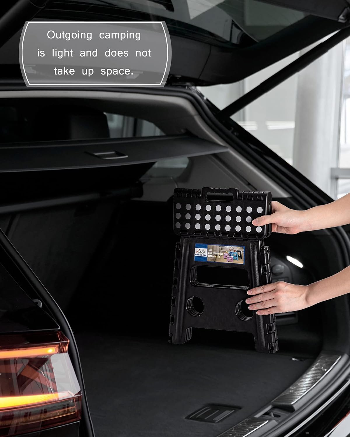 - Anti Slip - Rubber grips on the surface and anti-slip rubber feet on each foot create maximum grip, has amazing support and comfort. Unique grip-dot textured surface makes the folding step stool safe for everyone, including kids. These safety features make the step stool great for multipurpose uses i.e. kitchen, bathroom, dining room, office, garden, camping, fishing, and more.