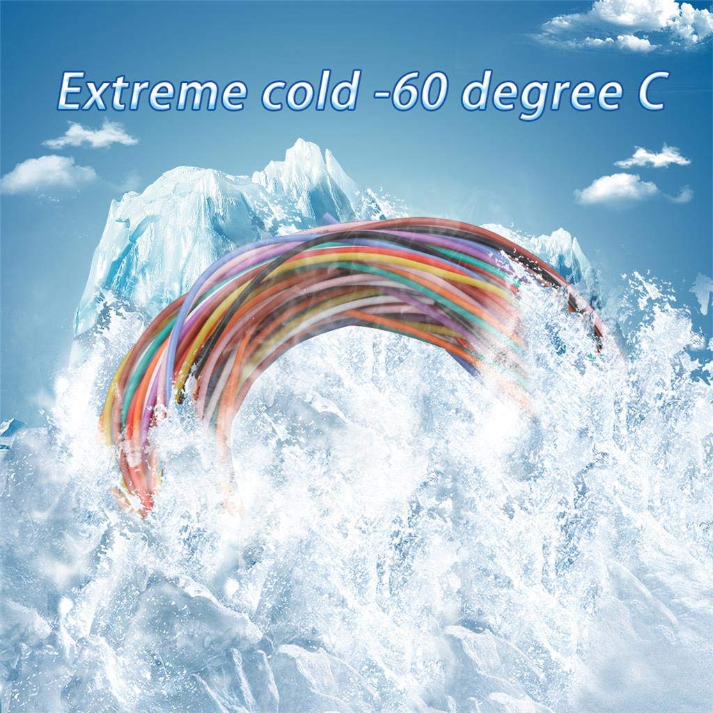 - They are constructed with premium silicone rubber insulation.High temperature resistance 200 degree C,Low temperature resistance,in extreme cold -60 degree C.Rated Voltage: 600 volts.Outside diameter 1.5 mm,tolerance +/- 0.1 mm.