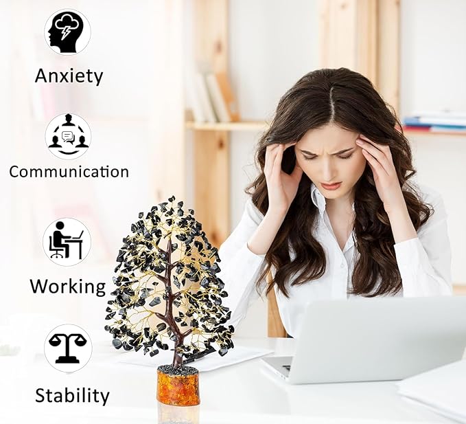 - ✨ BLACK GEMSTONE MONEY TREE: This Feng Shui Black Gemstone Money Good Luck Tree of Life (Golden Wire) Size: 10-12 Inch, Handmade in INDIA, Money tree brings good luck, prosperity, provides positivity and enhances the power of your surroundings. Crystals can be used for healing or environmental enhancement, Gemstone Tree represents self-reflection, prosperity, calmness, balance, optimism, and creativity.
