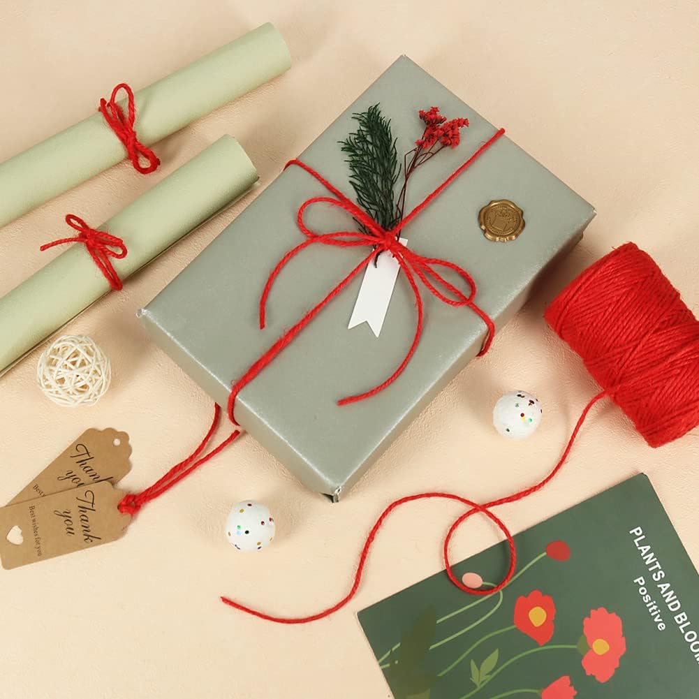 Tenn Well Red Jute Twine, 328 Feet 3mm Thick Craft Twine Packing String for Gift Wrapping, Gardening, DIY Projects