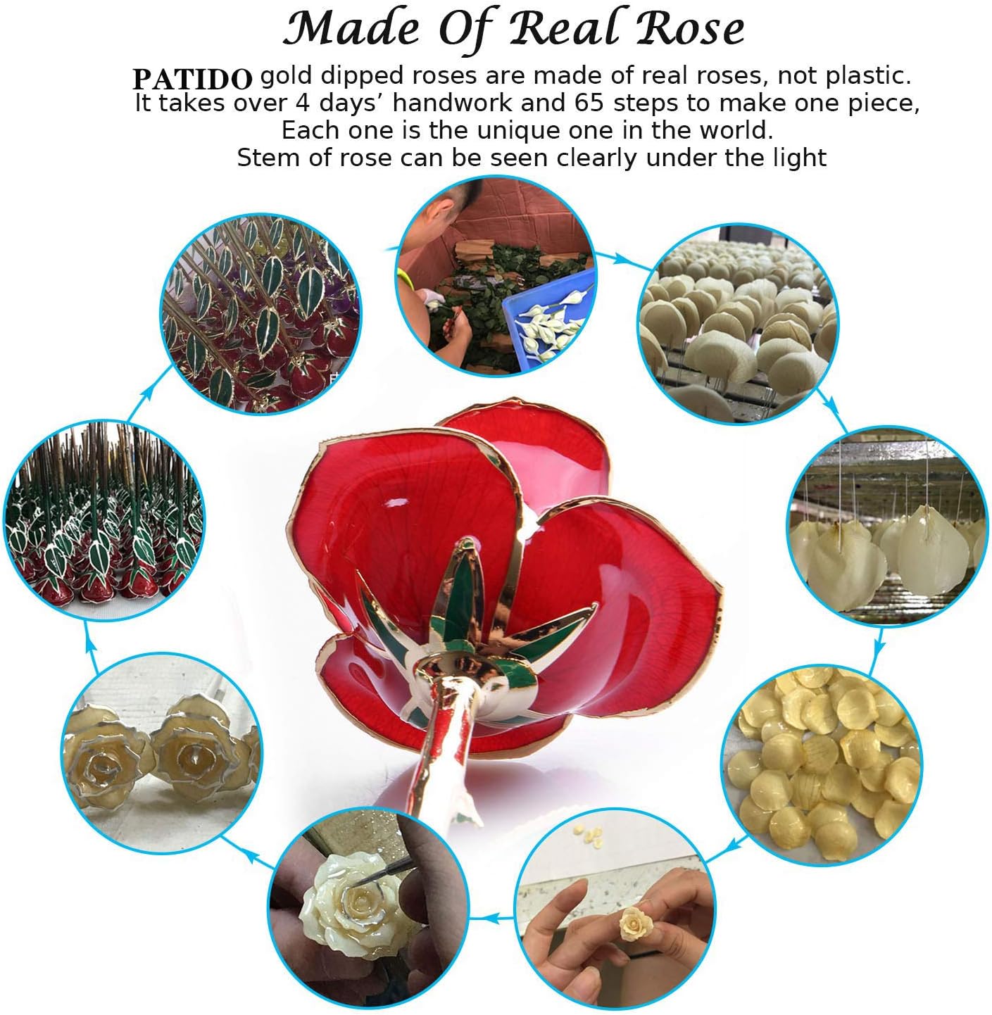 - Elegant 24k gold dipped long stem rose with real rose petals, leaves and thorns symbolizes eternal love - perfect for anniversary, birthday, Christmas, Valentine's Day, Mother's Day