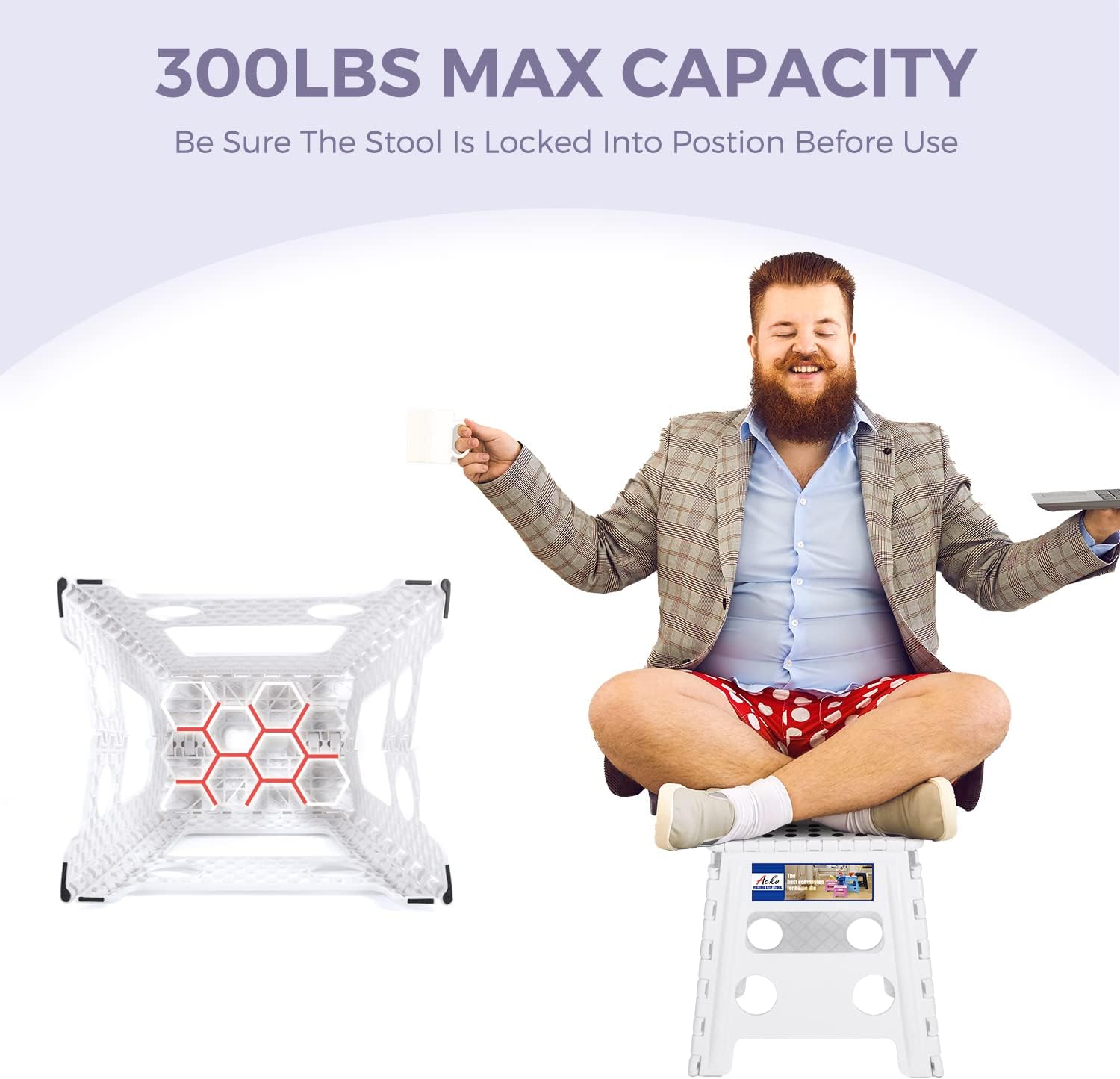 - PROPER USE - The maximum load capacity of the folding step is 300 pounds, which is mainly used for indoor sitting. The step stool must be used in dry and flat surface. Mustn't place the product in the environment above 30℃ and below﹣5℃ more than 5 hours.