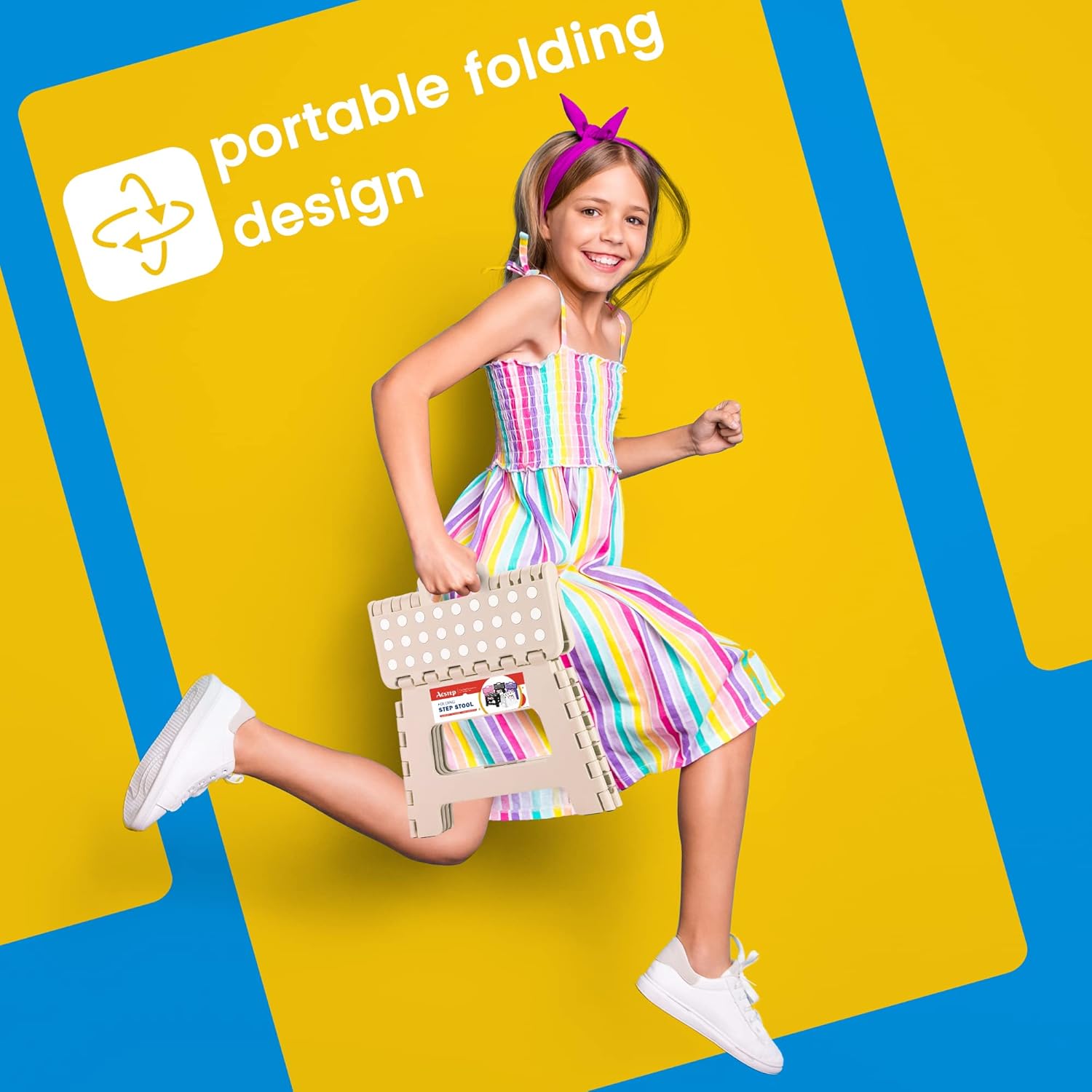 ACSTEP Folding Step Stool - 9 Inch Lightweight Plastic Non-Slip Foldable Stool for Kitchen, Bathroom, Bedroom - Khaki