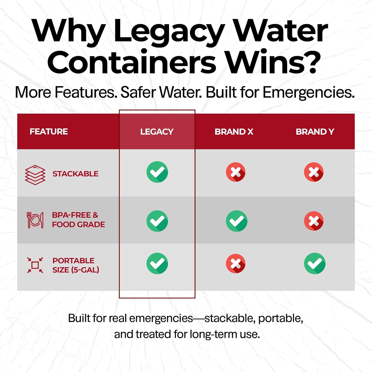 - At Legacy Food Storage, our focus is to provide families and individuals with the highest quality food and water storage available online. We look forward to delivering the peace of mind and comfort you'll receive knowing that you are prepared, regardless of what the future holds.