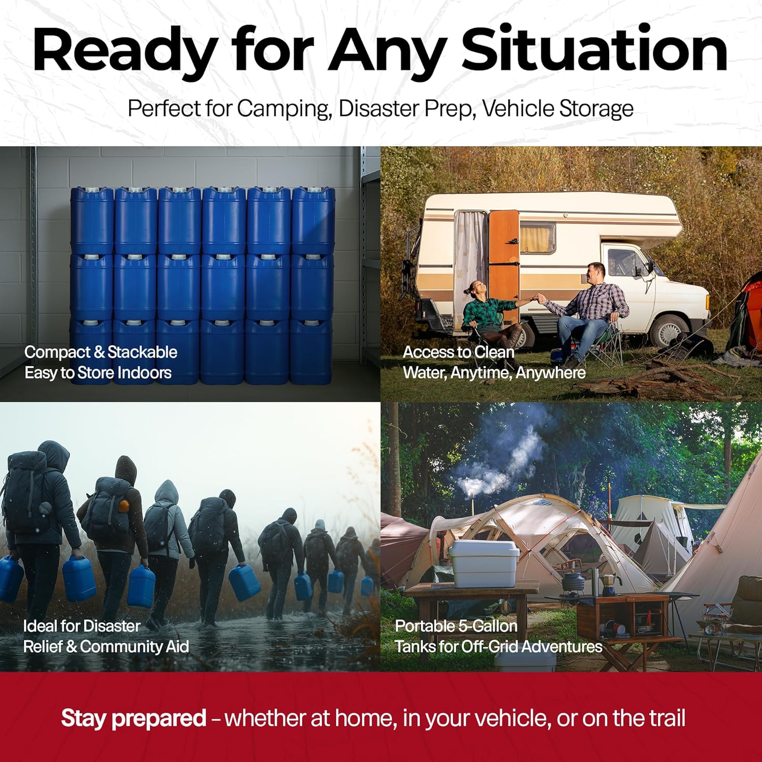 Emergency Water Storage Containers - 5 Gallons Each Water Storage Tank w/Lids + Spigot - Water Storage Container, Emergency Water Container, Survival Storage Tank - Stackable (5 Gallons (1 Tank)