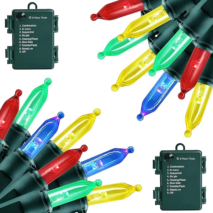 Christmas Lights - Battery Operated String Lights 50 LED String Lights Mini Lights with Auto-Timer and 8 Lighting Modes for Christmas Wreath Party Wedding Garden Home Decoration, Multicolor 2Pack