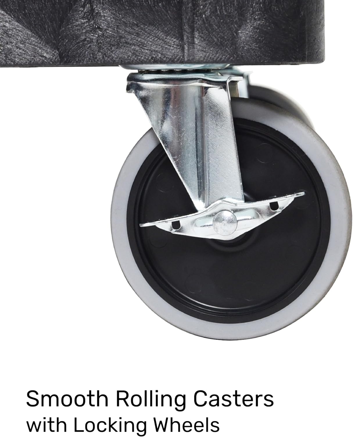 - High-Quality Construction for Lasting Durability: Each utility cart in this 2-pack is designed with rounded corners and built from high-density polyethylene (HDPE) for exceptional durability. Featuring two spacious shelves with 2.5β deep tubs for secure storage, these black carts offer 19.5β clearance between shelves to accommodate larger items with ease, making them perfect for versatile, heavy-duty use.