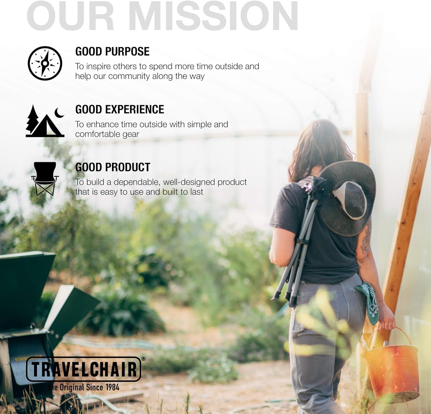 - BUILT FOR GOOD: TravelChair is a family-owned US brand. We began in 1984 and have continued to grow in the travel chair market over the years. We believe in delivering products that are easy to use and durable. Each chair is built for good.