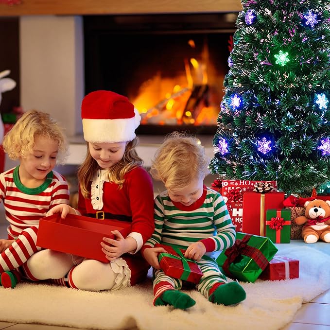 - 🎄Pre-Lit Design — Featuring optical fiber tubes and 12 LED lights with snowflakes, this Christmas tree is pre-lit to provide eye-catching shining effect at nights. These LED lights are energy-efficient and long lasting. And optical fiber will keep lighting only with the open of light source, even without the LED lights.