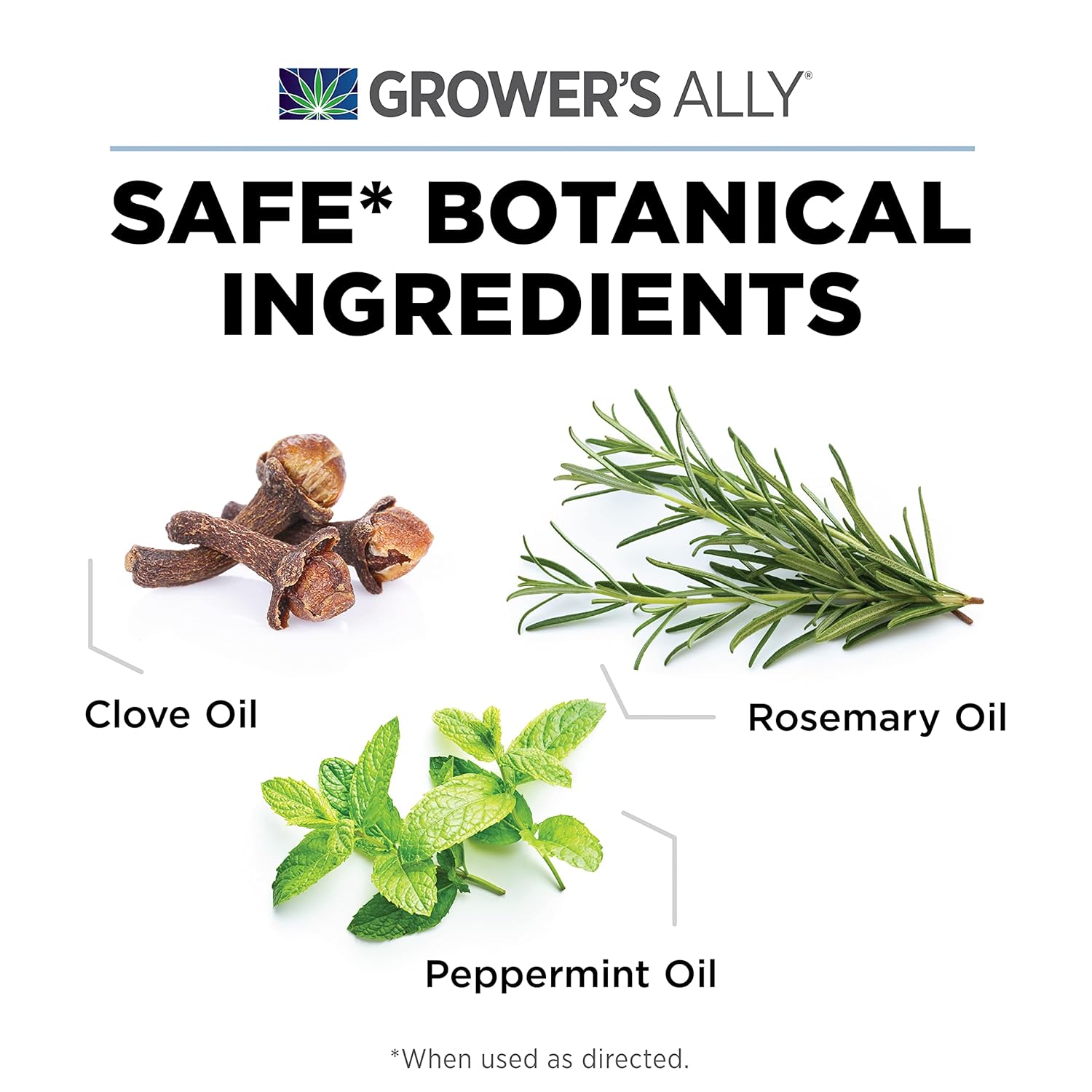 - ZERO POLLUTANTS – Formulated with an effective blend of rosemary, clove and peppermint oils, our formula is FIFRA 25(b) exempt and OMRI Listed for use in organic gardening. Grower’s Ally tests clean and contains no residual solvents, no synthetic pesticides and no heavy metals.