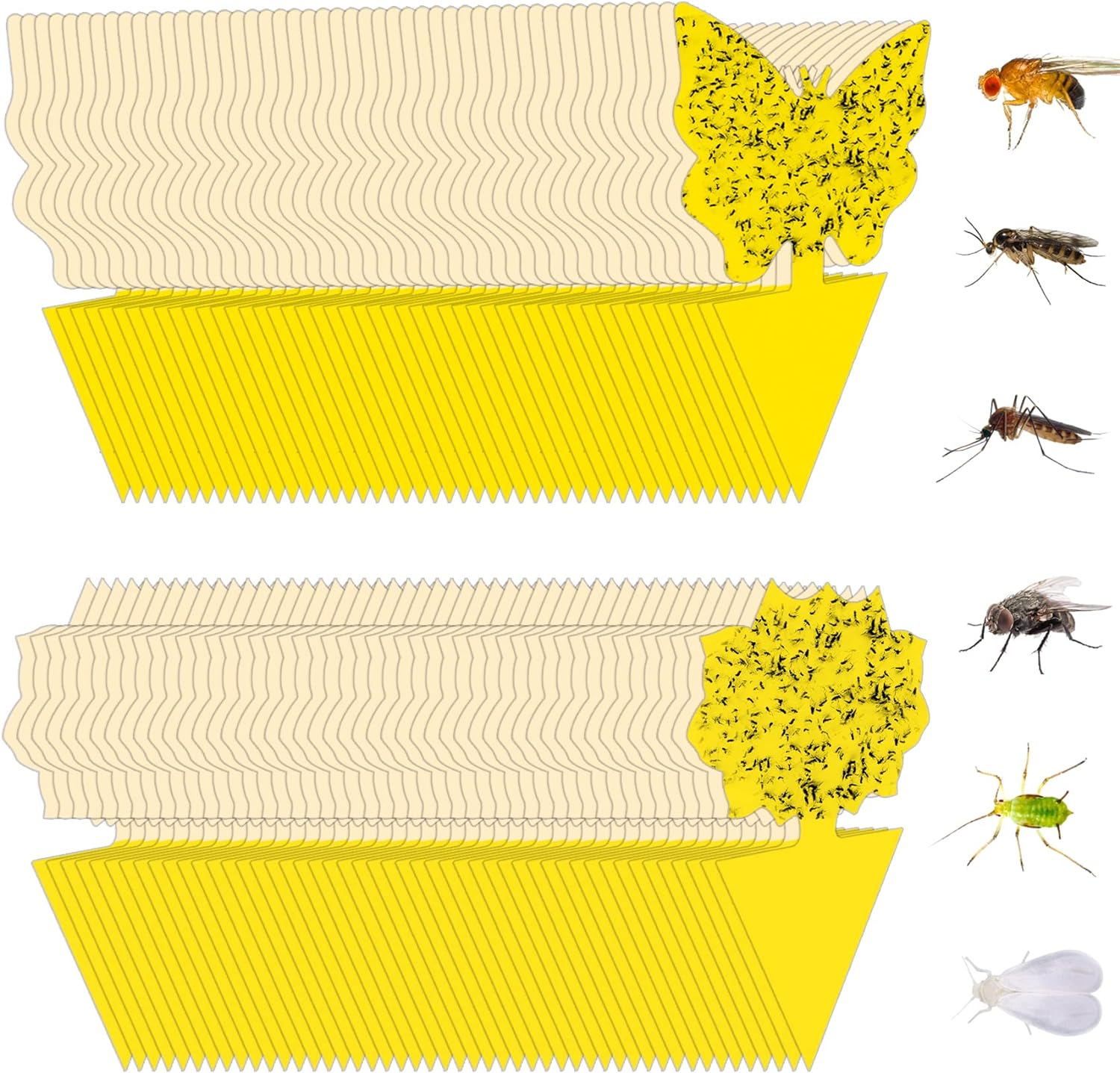- Long lasting: gnats killer indoor trap paper with a very strong adhesive, sticky traps for gnats are uv resistant and waterproof. No need to replace the houseplant insect catcher until fully covered with bugs.