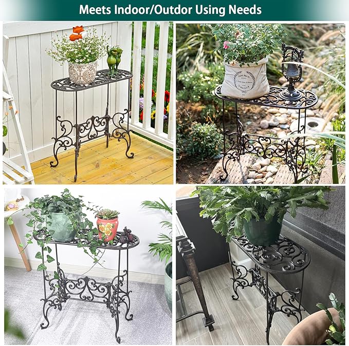 - Sturdy and Stable Base: Designed with ornate curved legs and cross support for added balance and support for heavier pots or items. Stand Size: 22.6"L x 22"H x 9.3"W, Weight:7.1kg.