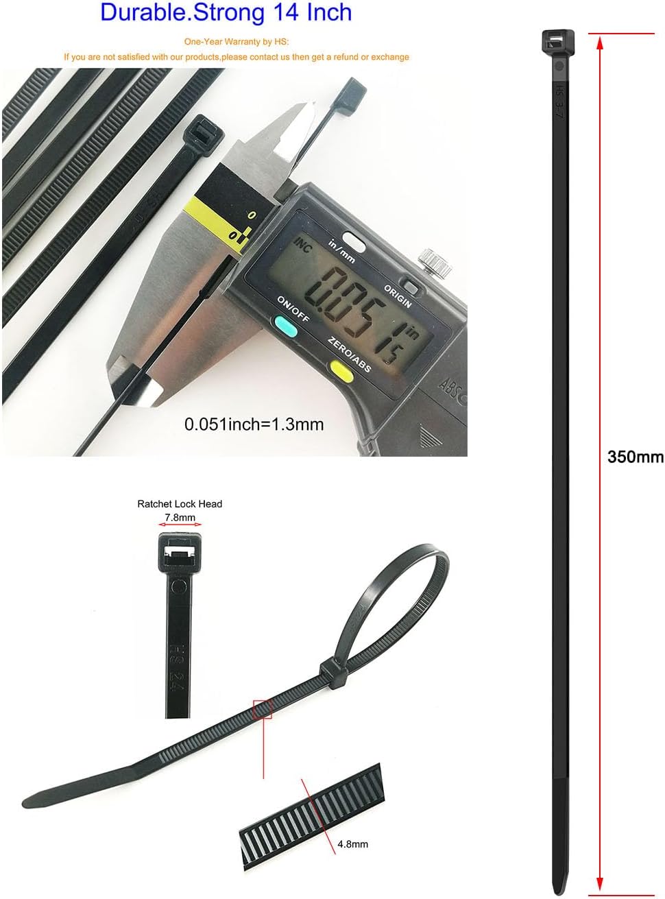 - RISK FREE GUARANTEED - Quality guarantee and 5-star customer service. If you are not 100% completely satisfied with your 14" cable ties, simply let us know and you will be offered a refund or replacement.