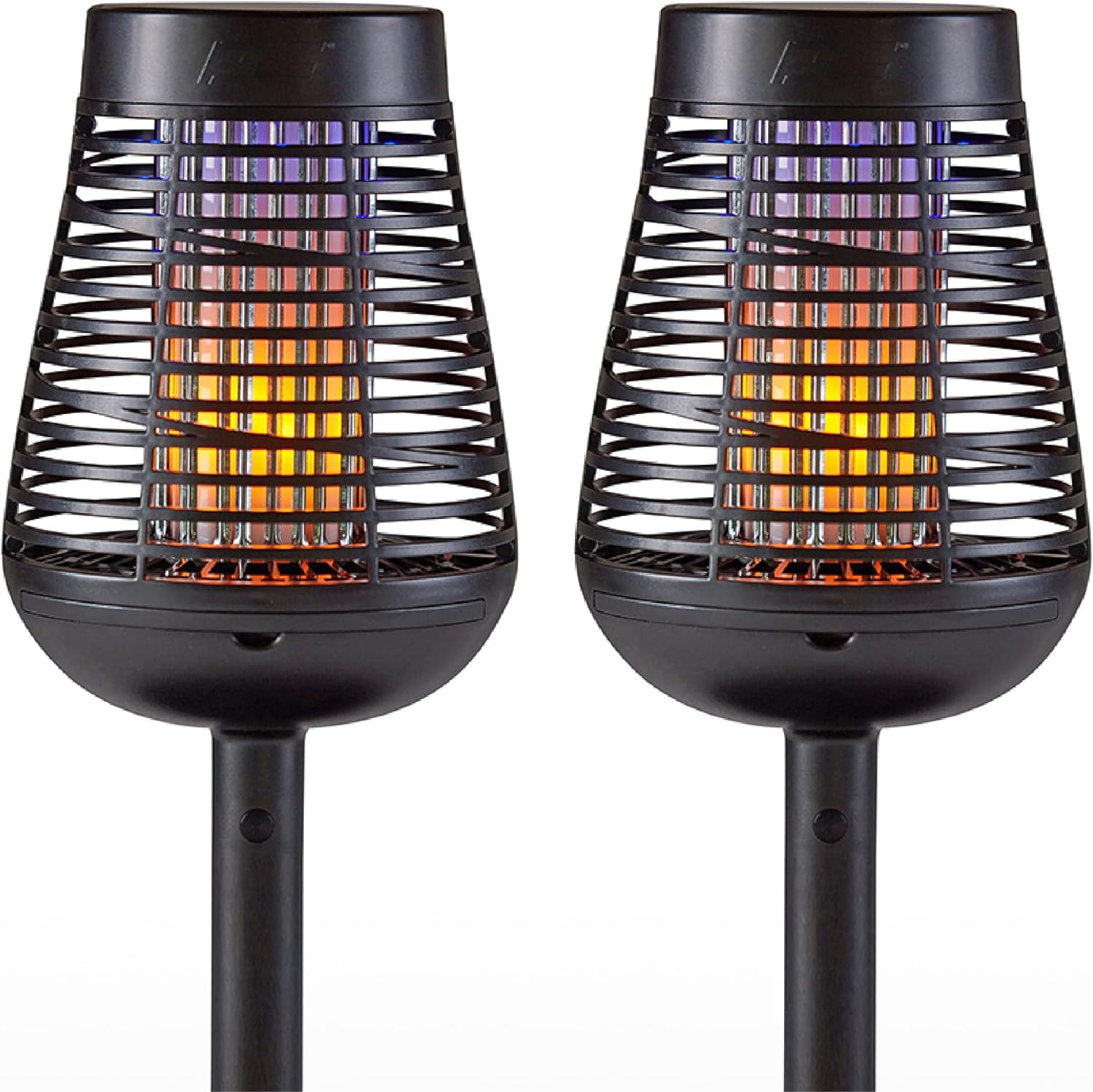 PIC Bug Zapper, 600V Solar Powered Insect Trap & Fly Zapper for Outdoor Use, LED Flickering Flame, Activates Automatically in Dark, Weatherproof Outdoor Fly Trap, Kills Bugs on Contact, Twin Pack