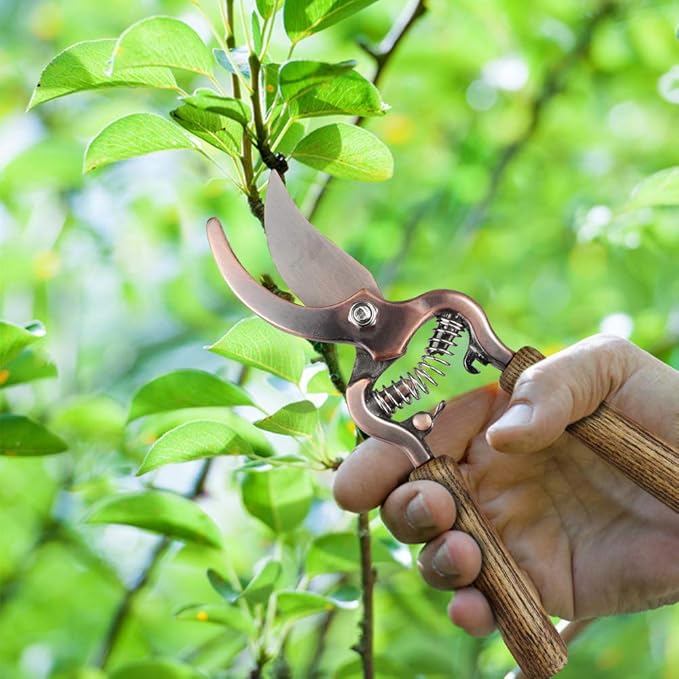 - 1 Pc of Bypass Pruning Shear with Bronze Surface Treatment and Wood Handle - Ideal for cutting stems and light branches.