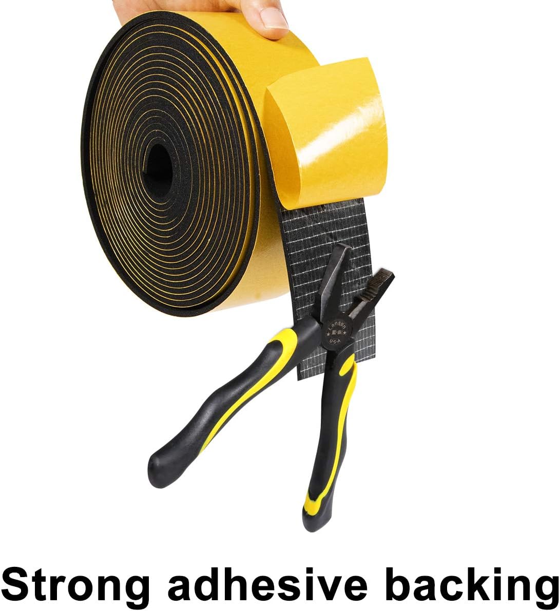 - MATERIAL :This is high density foam tape made from environmental friendly material CR foam, Neoprene, Easy to install for windows or doors with strong adhesive backing,Attaches well to plastic metal, glass, and other smooth surfaces.