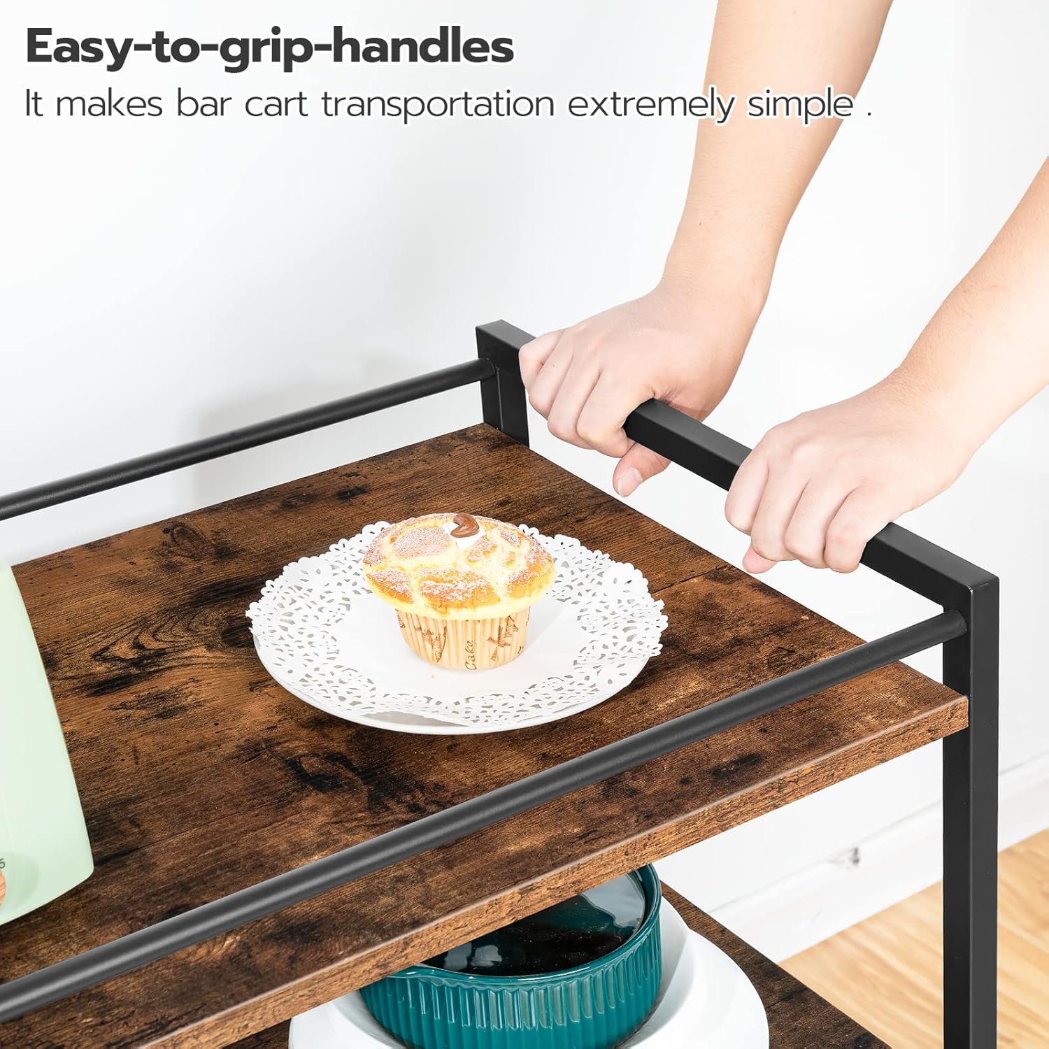 - Pivotal Entertaining Help: With 3 layers of shelves, the serving cart is a handy solution for limited counter. It is also a snazzy blessing throughout the party time to mingle and serve guests while also showing off their liquor. Under the top shelf there is a rack to hang up to 3-5 wine glasses